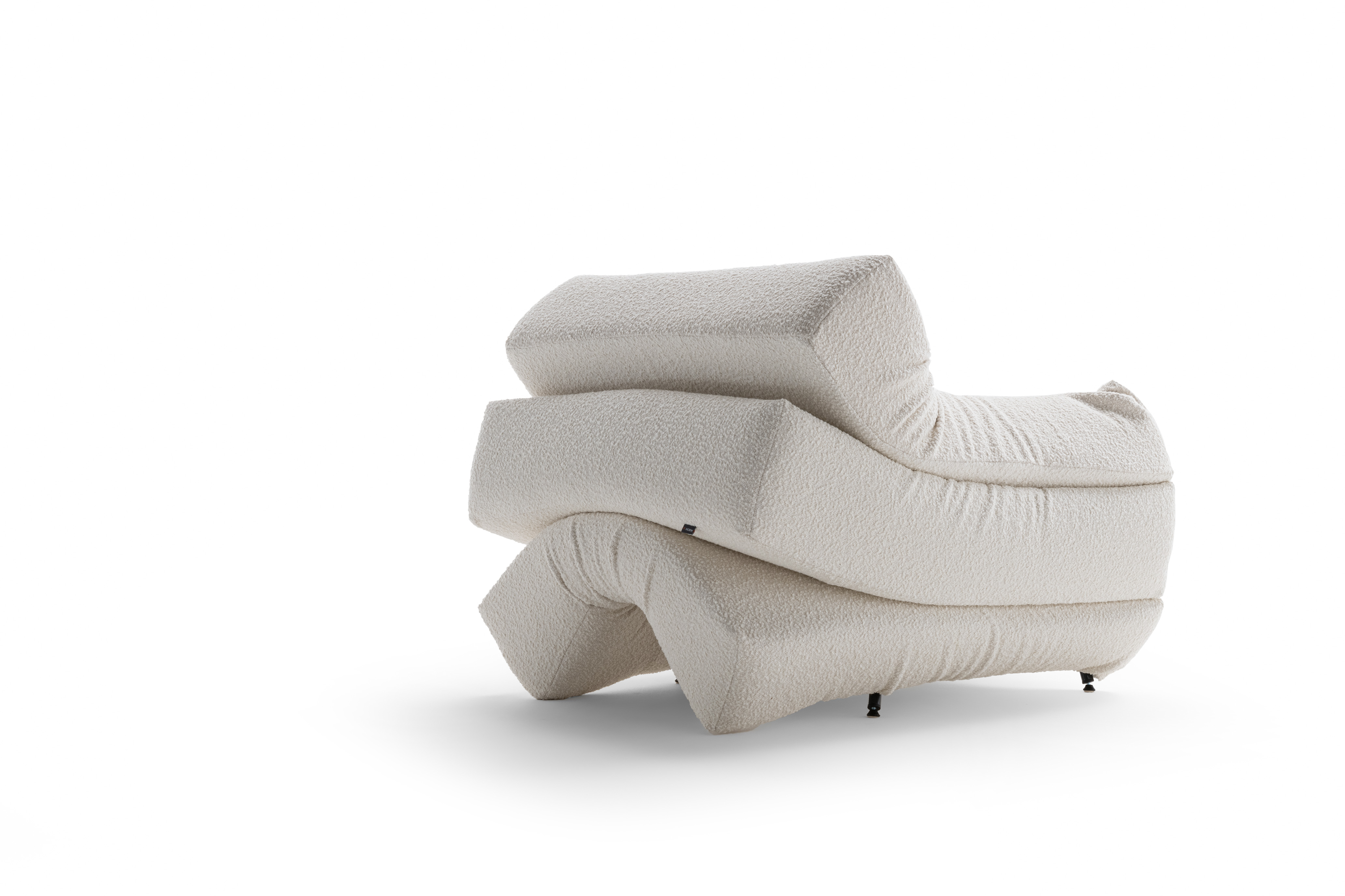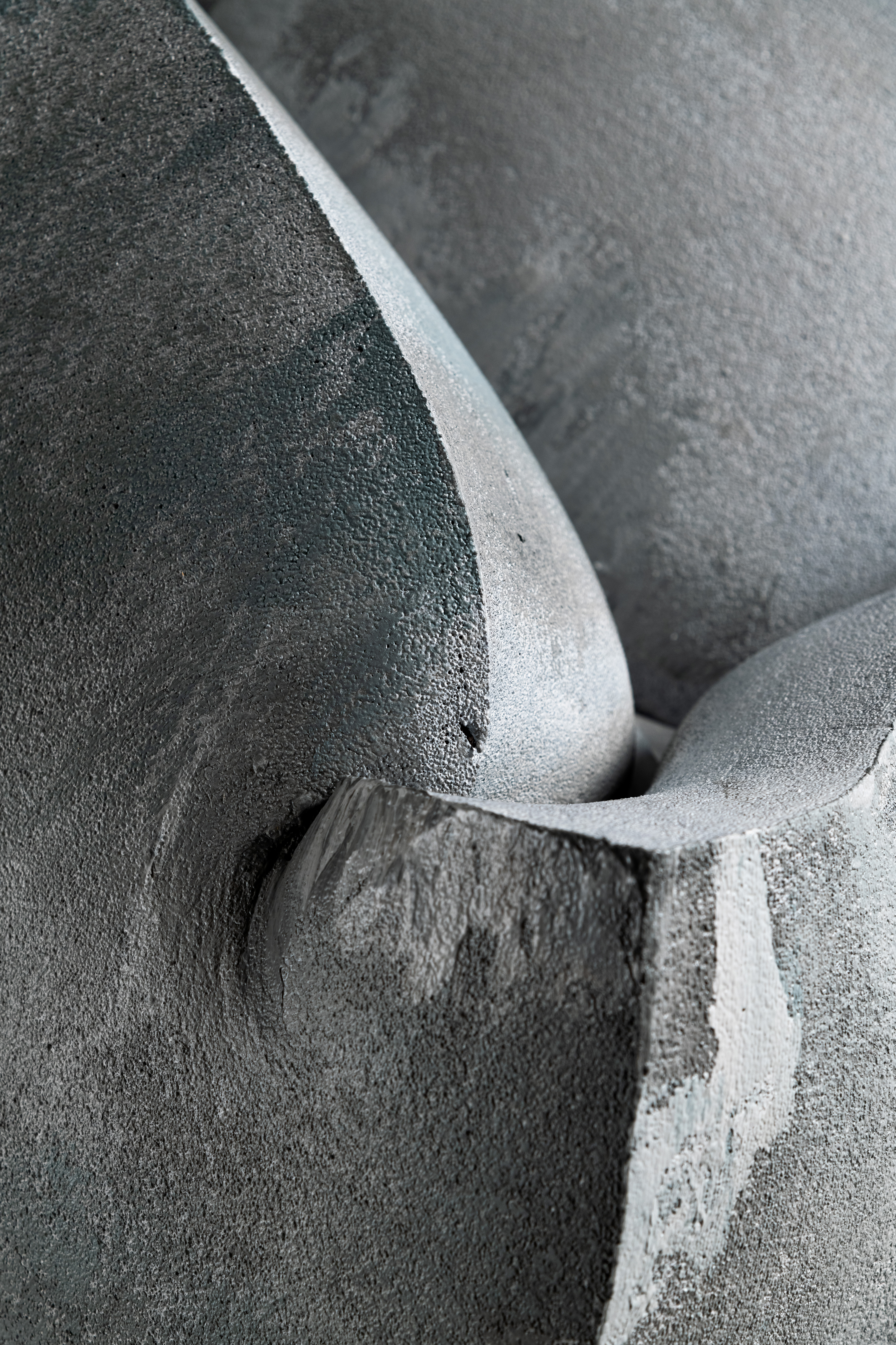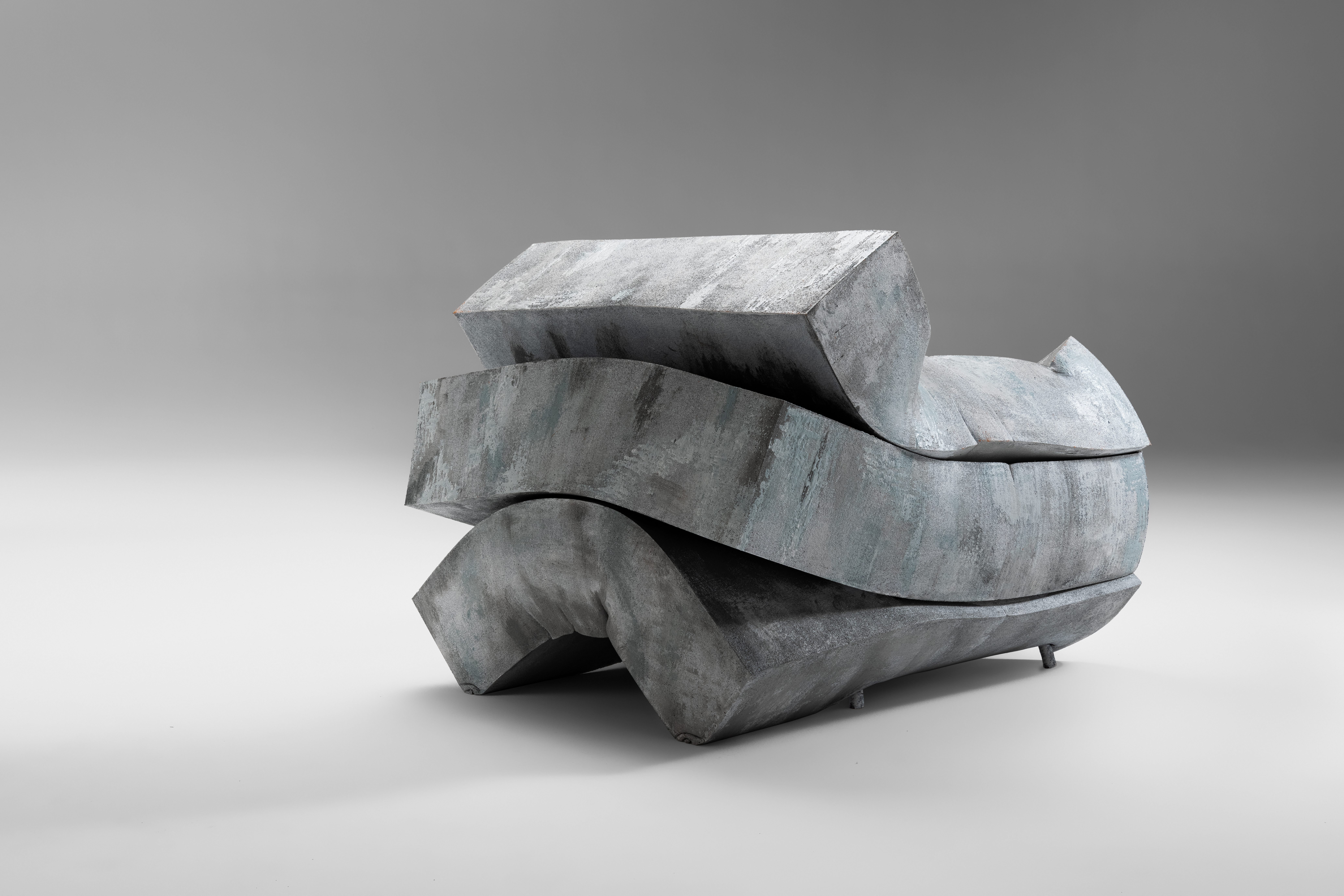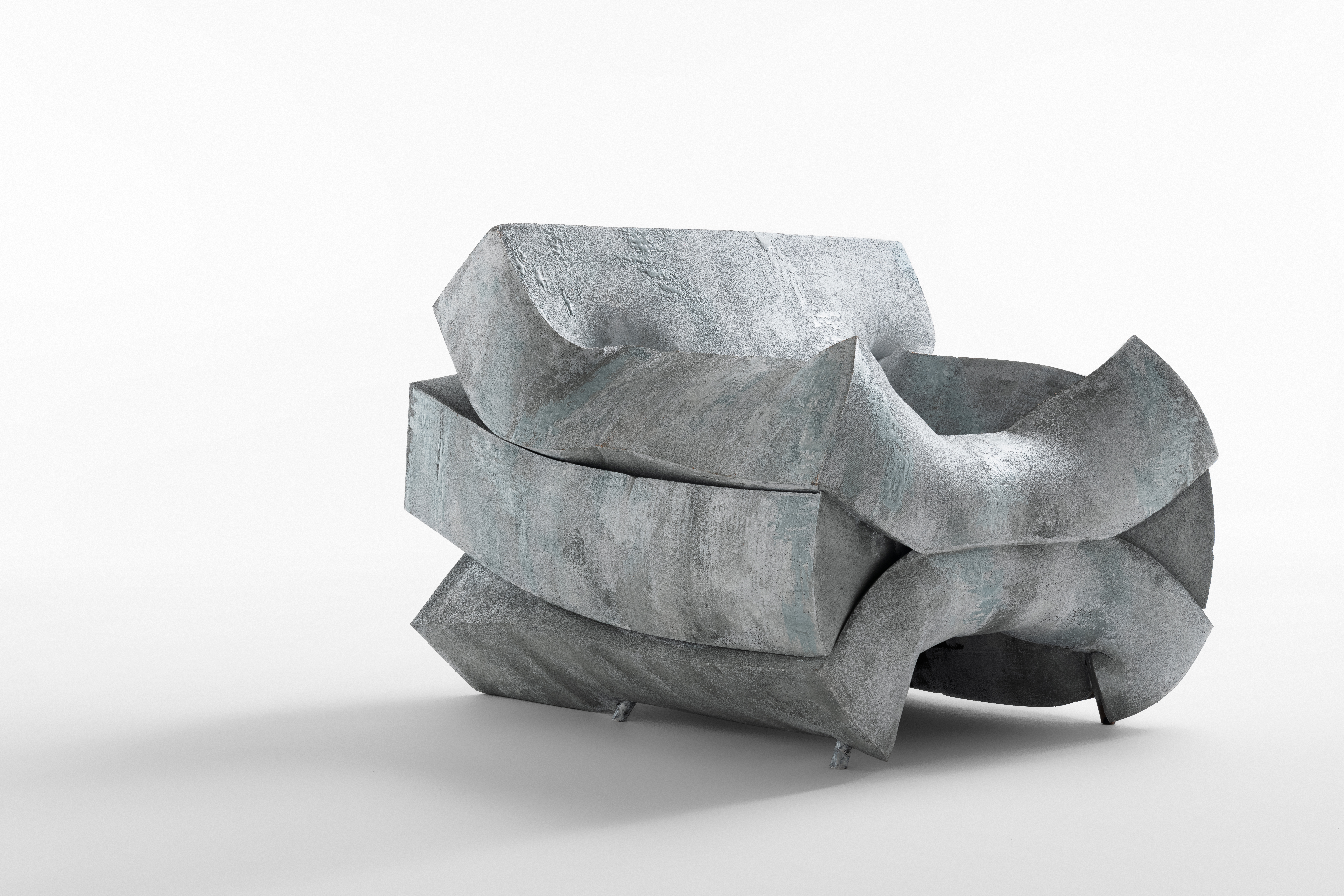Made with three compressed layers inside a painted metal structure, the armchair is available in a single version as a real work of art dedicated to galleries and museums. The project is the result of a complex, totally manual surface treatment to make the foam paintable with oxidized liquid copper and/or concrete effect: a result with a remarkable visual impact that preserves its softness.