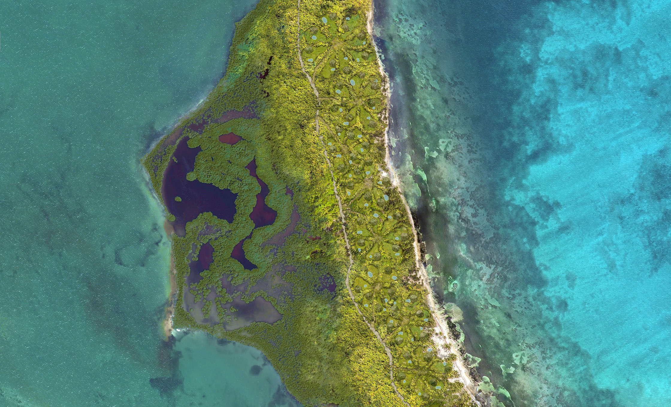 This community of 40 villas is organized in harmony with the breathtaking Ambergris Caye setting, which fosters a stimulating and spiritual environment through shared waterfront amenities. The development focuses on redefining sustainability from a mechanical practice into a demonstration of our love for the earth and its resources. Harmony between architecture and nature is central and allows guests to grow spiritually and culturally through the power of place.