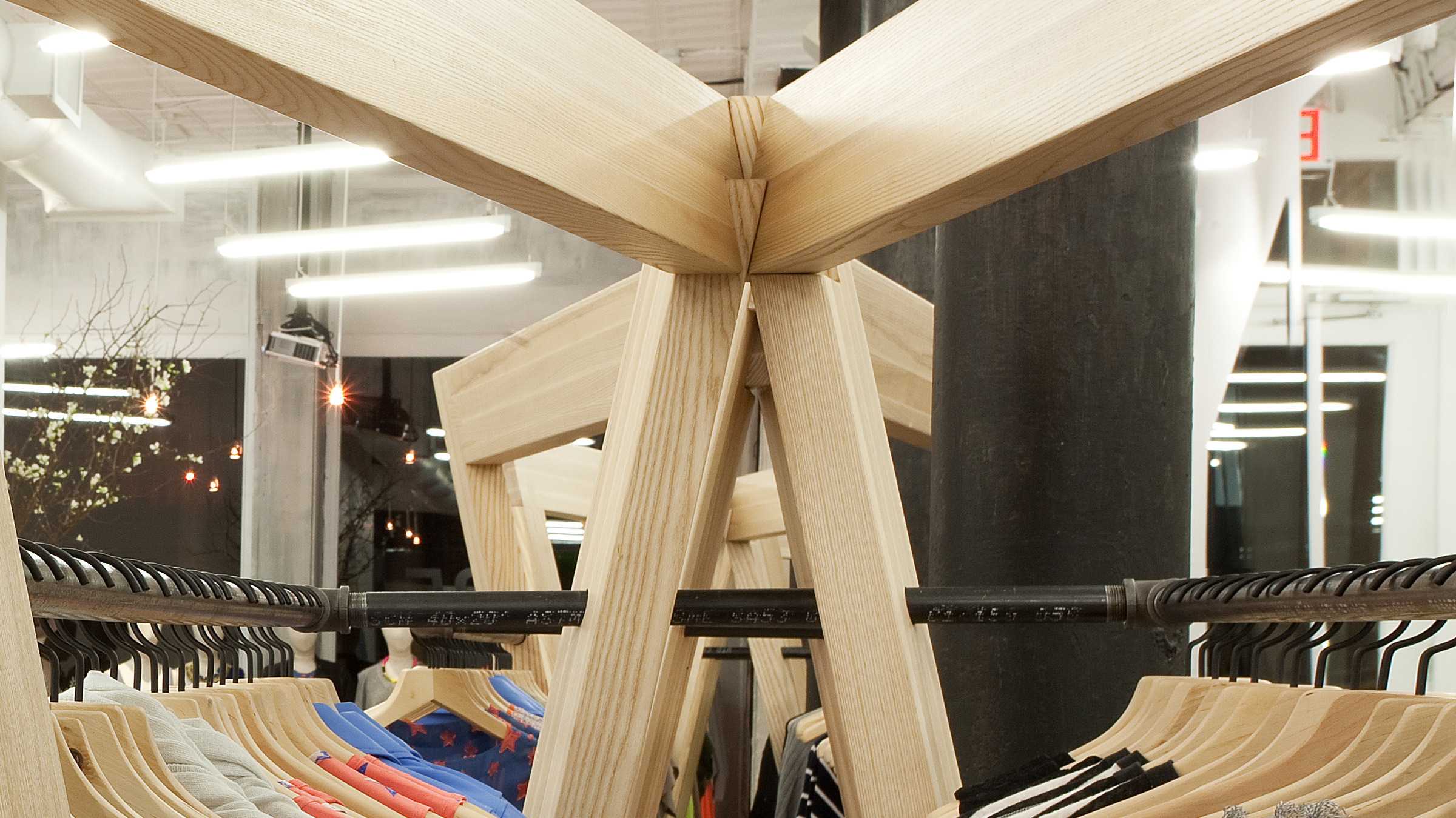 Building on the success of his eponymous line, fashion designer Yigal Azrouël launched his playfully edgy women’s clothing label Cut25 in 2010. To play off of the collection’s varied textures and body-conscious silhouettes, Dror created a retail environment featuring an angular, geometric installation occupying 1,400 square feet of space in SoHo.