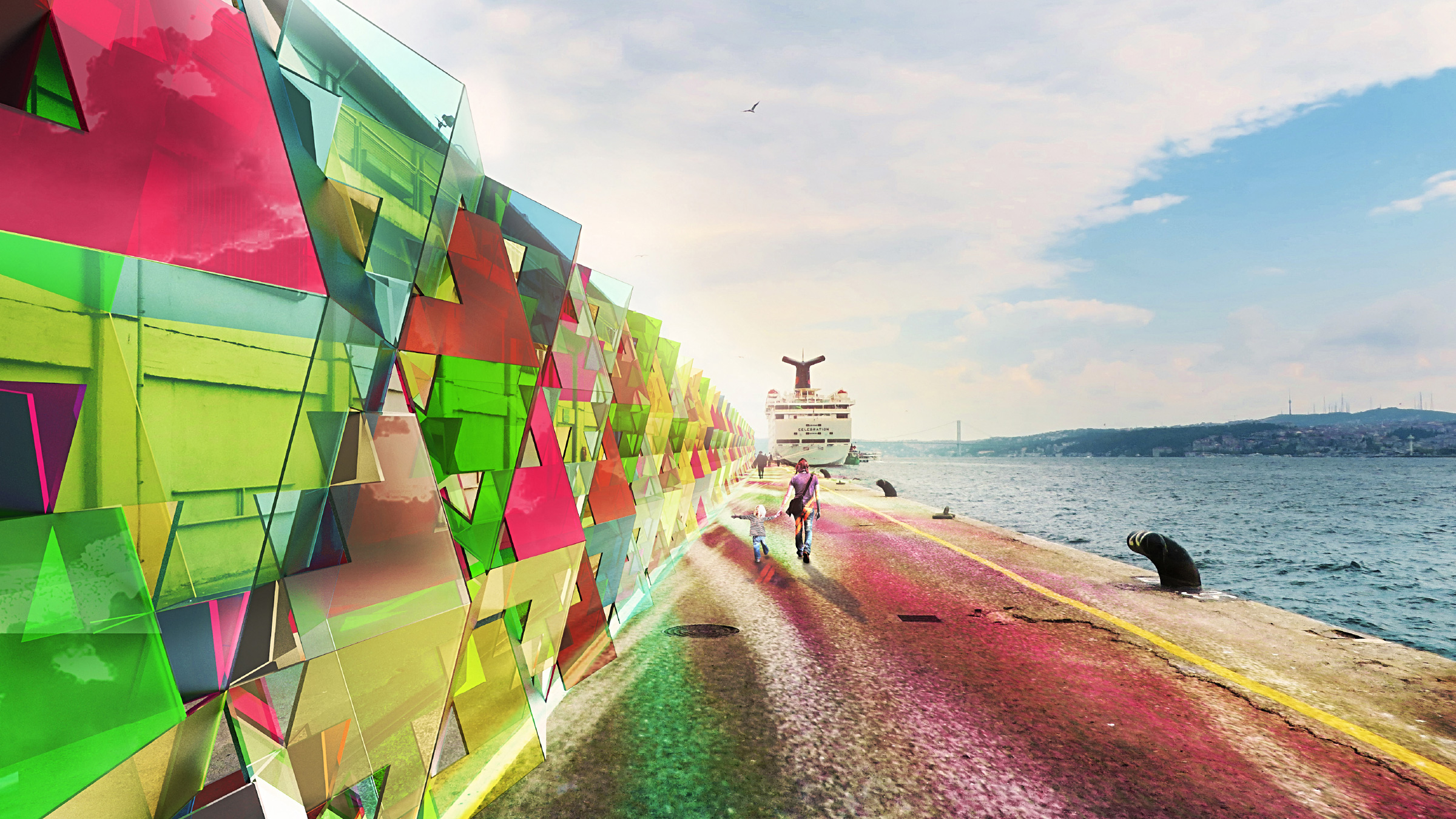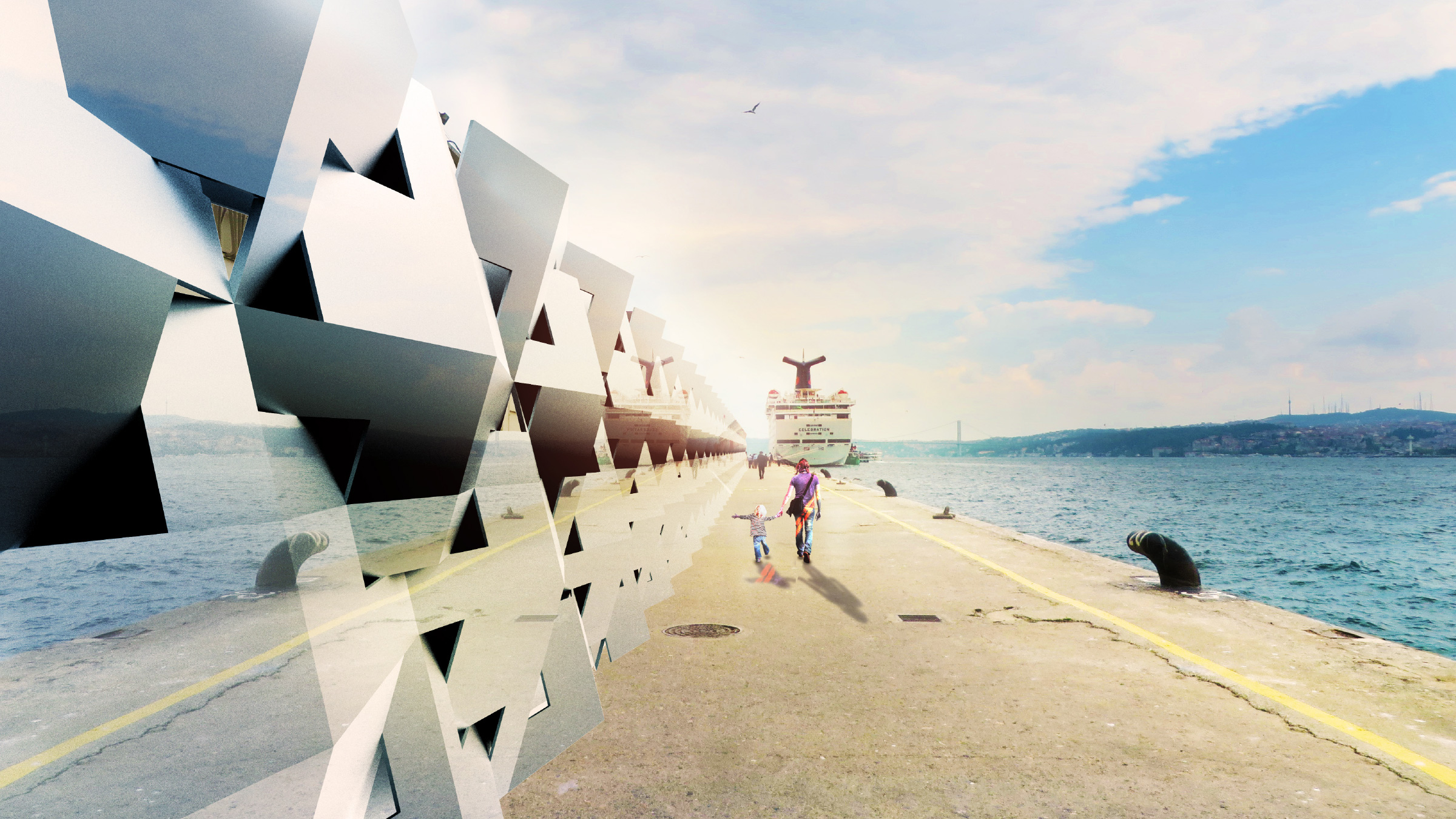 Like all large-scale architectural projects, one of the studio’s recent commissions will require several years to complete. Our client asked us to propose a way to barricade the site for the duration of the construction process. At the time, we had recently completed a freestanding wall made of stacked QuaDror structures. I saw this as an opportunity to translate the design for this particular location: a 1.2-kilometer stretch of boardwalk along the bosphorus in Istanbul.