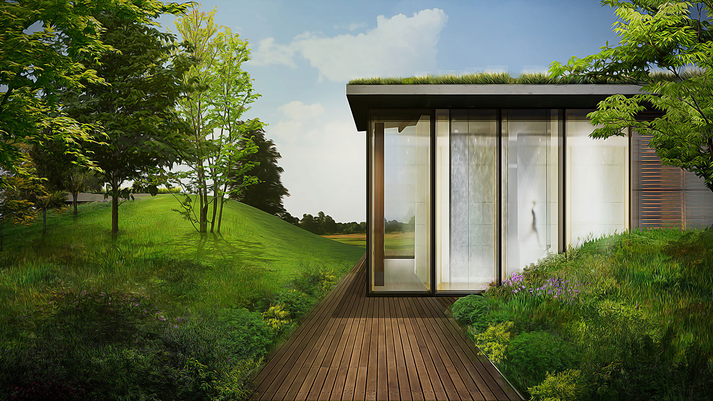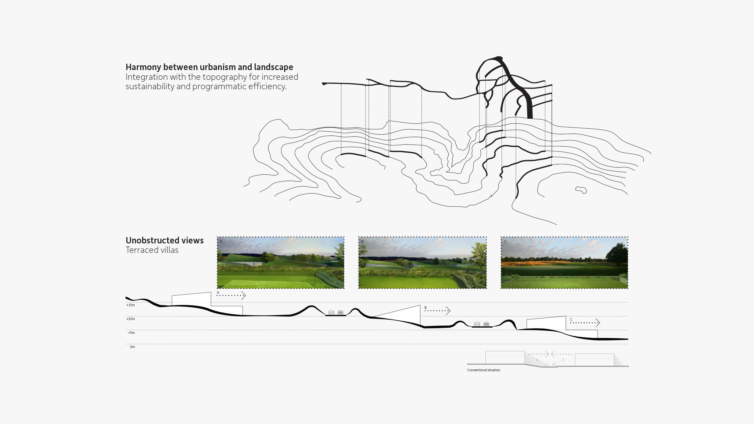 Structures supplement the existing topology in our vision for Hunters Hills, transforming it into an extended landscape for living.