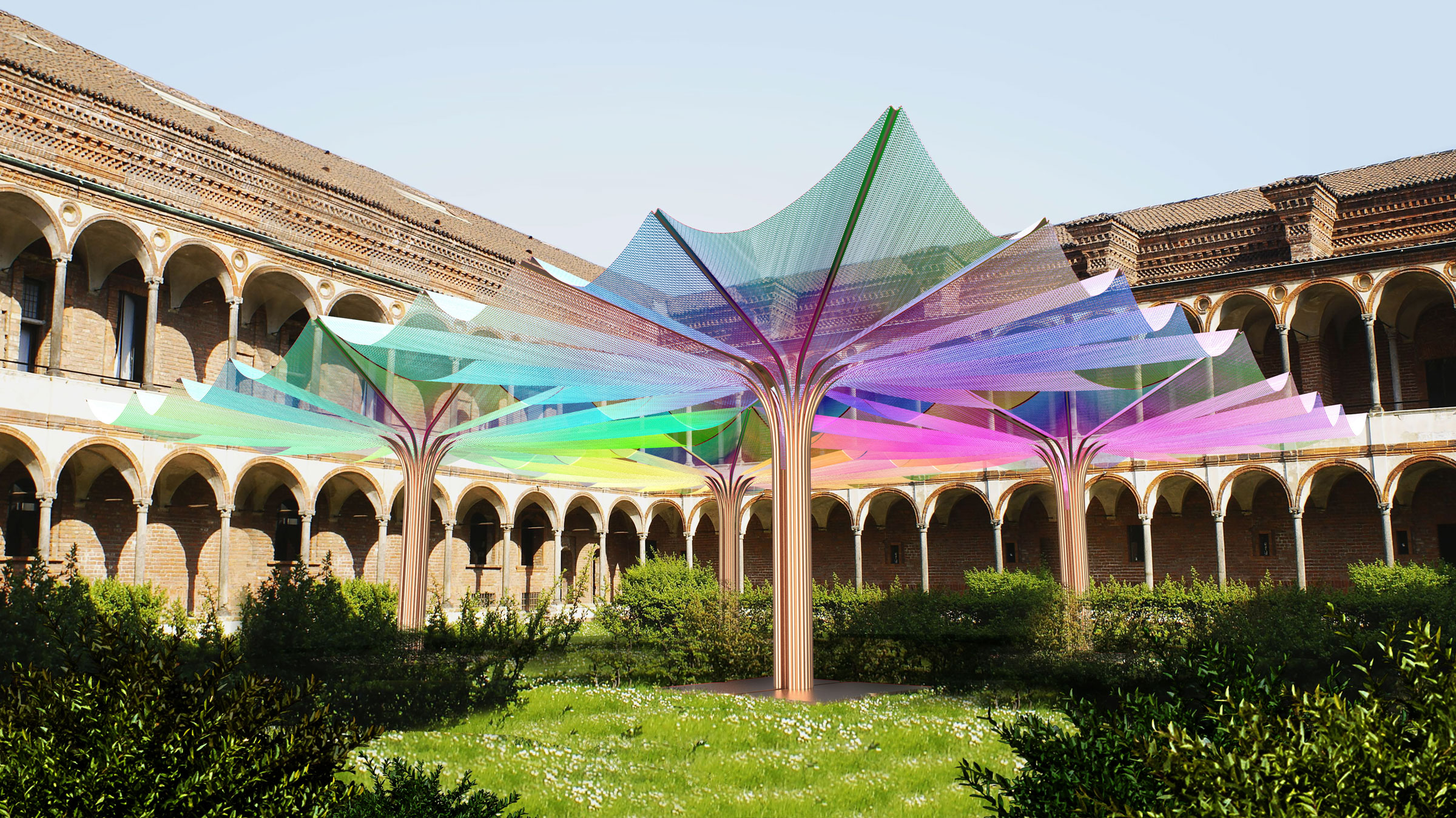 Leaf transforms a traditional shade structure into a mesmerizing work of art. Taking inspiration from fluid forms found in nature, vibrant petals expand from a brilliant stalk, casting a kaleidoscope of colors onto its surroundings. Providing shade and shelter, the eye-catching canopy can serve a multitude of purposes.