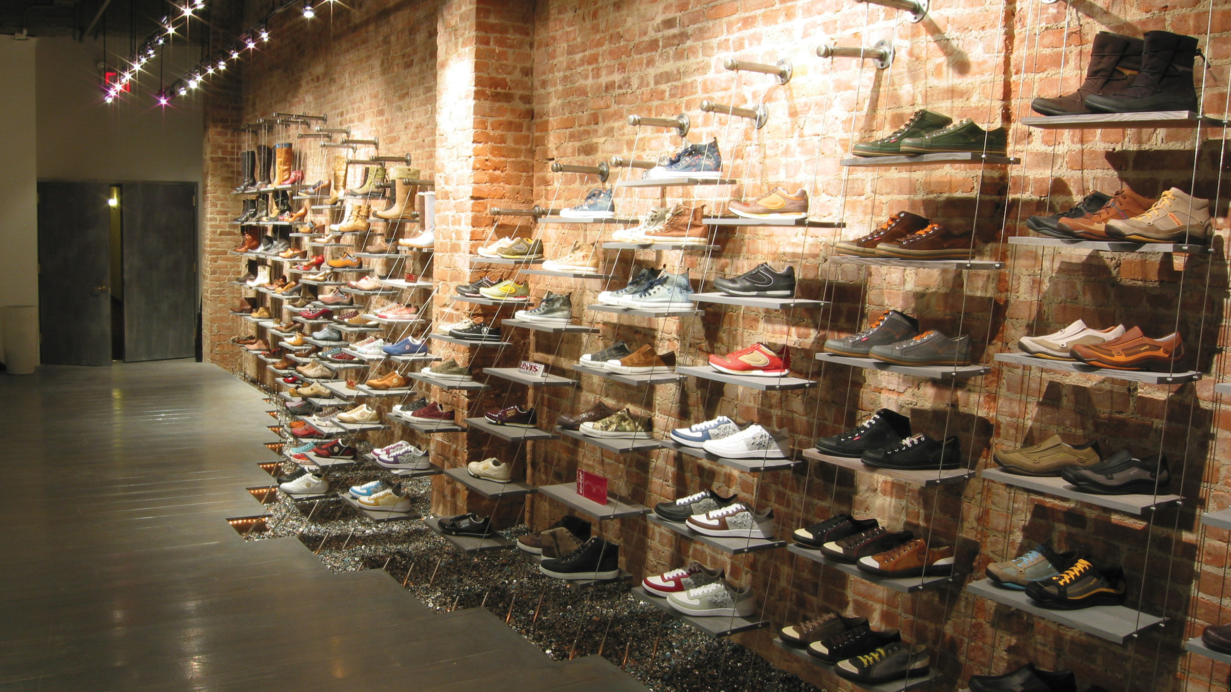 Located on Fifth Avenue in New York City since 2006, the showroom places emphasis on the newly launched Levi’s footwear brand. The main shoe display, inspired by bridge construction, utilizes steel cables and wood pieces to translate the iconic trademark of Levi's into a three dimensional object.