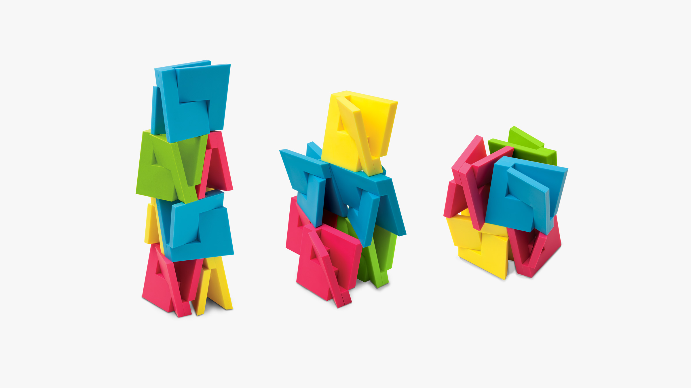 Decor Craft Inc / DCI launched the QuaDror geometry as toy building blocks, in two sizes (3" and 1.5") and four colors.