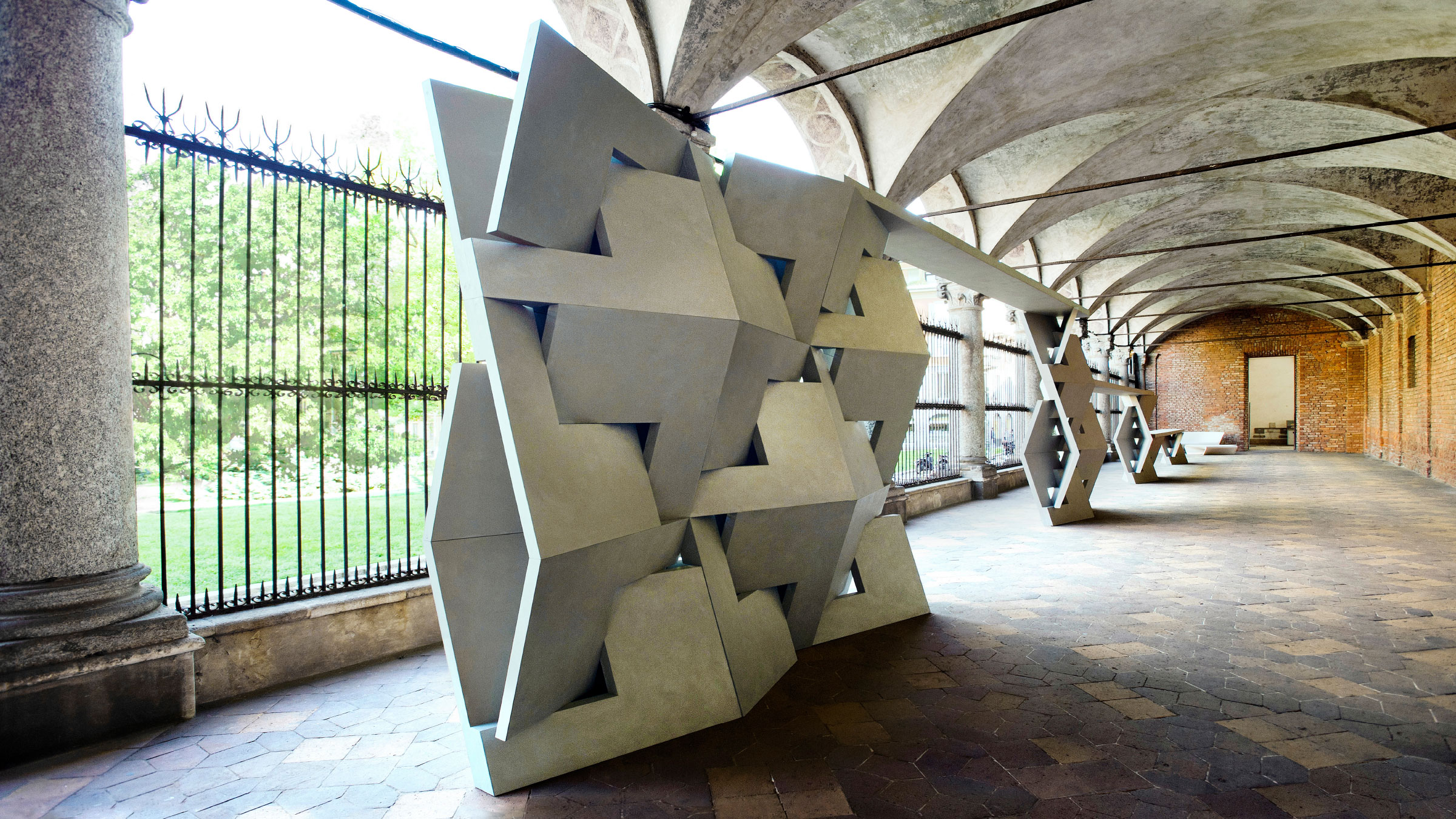 Our contribution consisted of 30 concrete QuaDror structures, each measuring one meter by one meter. The sculpture begins with a QuaDror square that bridges a tower of two squares, which bridges a tower of three squares. A QuaDror wall bridges the final structure, resulting in a staggering 20-meter-long installation. Produced by Italian fabricator Moretti, the sculpture highlights QuaDror’s profound versatility and strength.